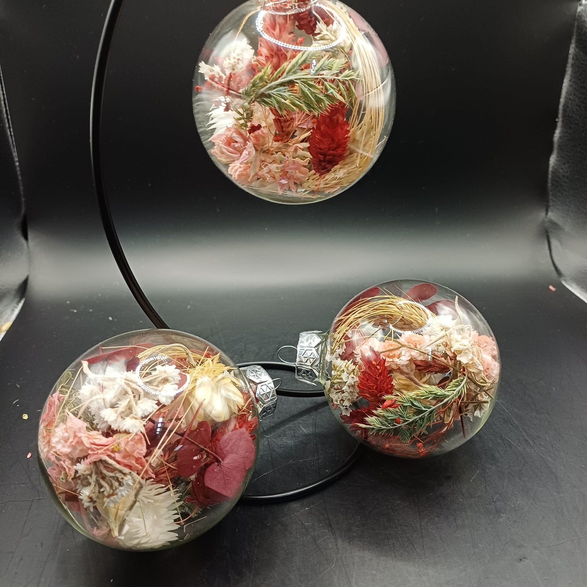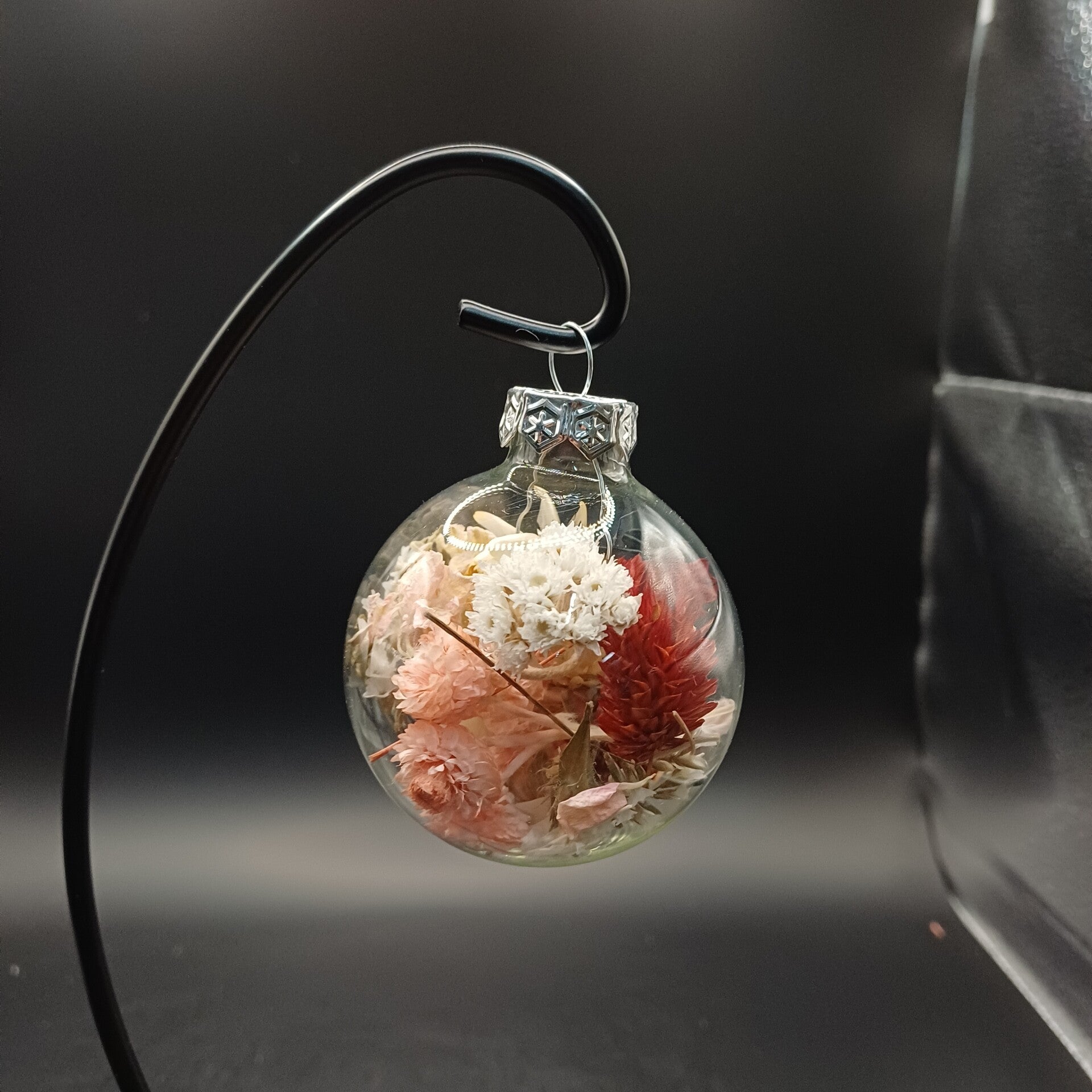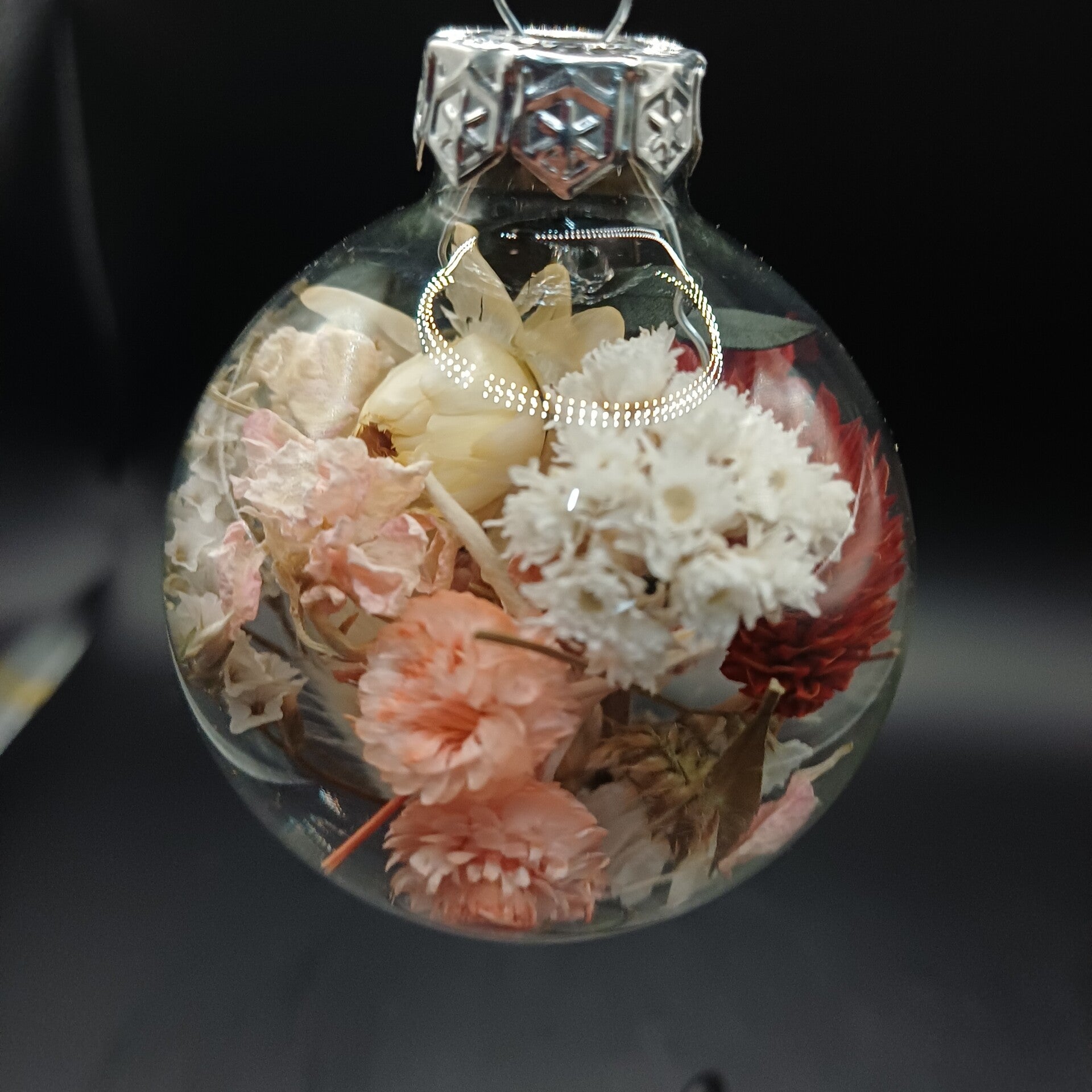 Glazen kerstbal met keuze uit 6, 8 of 10 cm incl. fleurige droogbloemen.